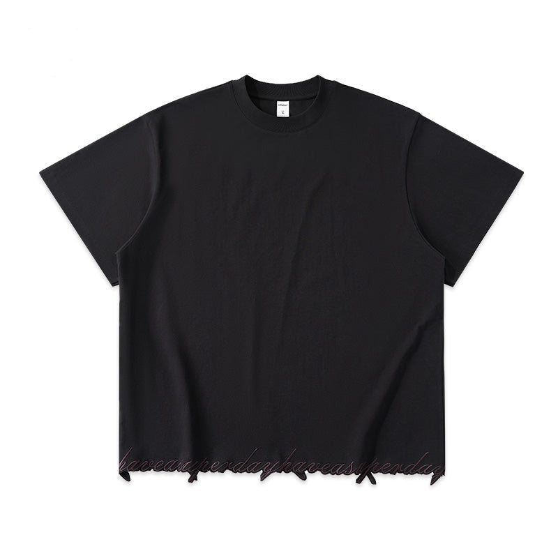 This urban classic solid-color T-shirt features a soft yet substantial feel. Designed with a relaxed 90s-inspired silhouette and dropped shoulders, it creates a casual, draped fit. The hem is finished with embroidered lettering, adding a subtle yet stylish detail that keeps the look clean and versatile.