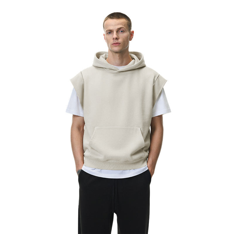 This urban classic solid-color sleeveless hoodie is crafted from heavyweight 600g fabric for a premium, substantial feel. Designed with a relaxed 90s-inspired silhouette and dropped shoulders, it delivers a casual, draped fit. Clean and versatile, it’s an easy layering piece for everyday street style.